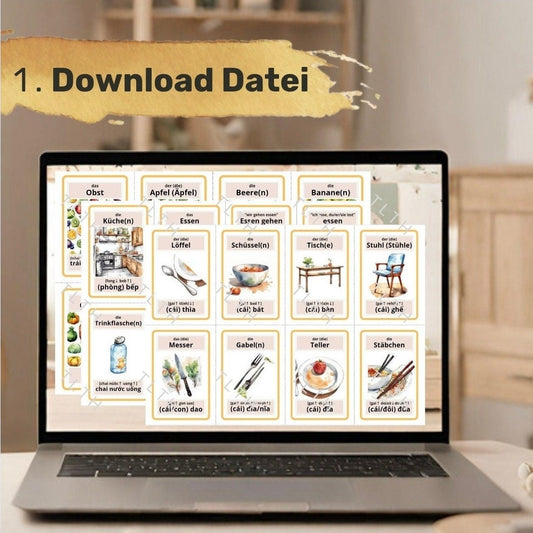 Lernkarten Deutsch - Vietnamesisch - Rund ums Essen - Zweisprachig lernen Flashcards - Học Tiếng Đức - Tiếng Việt "FLASHFOO"