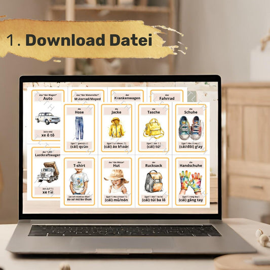 Lernkarten Deutsch - Vietnamesisch - Kleidung und Fahrzeuge - Zweisprachig lernen Flashcards - Học Tiếng Đức - Tiếng Việt - quần áo và xe cộ "FLASHCLO"
