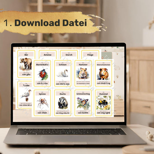 Lernkarten Deutsch - Vietnamesisch - Erste Tiere - Zweisprachig lernen Flashcards - Học Tiếng Đức - Tiếng Việt - con vật đầu tiên "FLASHAMI"