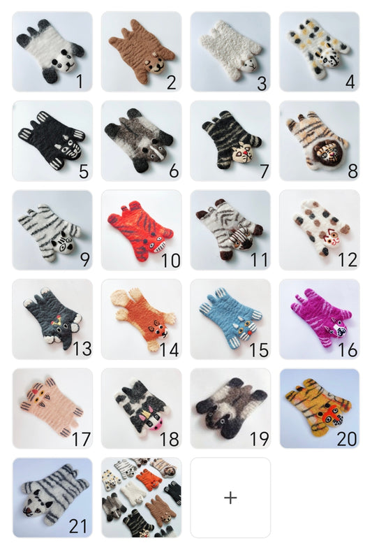 Felt wool coasters: cat, bear, panda, sheep, tiger, zebra, elephant, cow "FIUT"