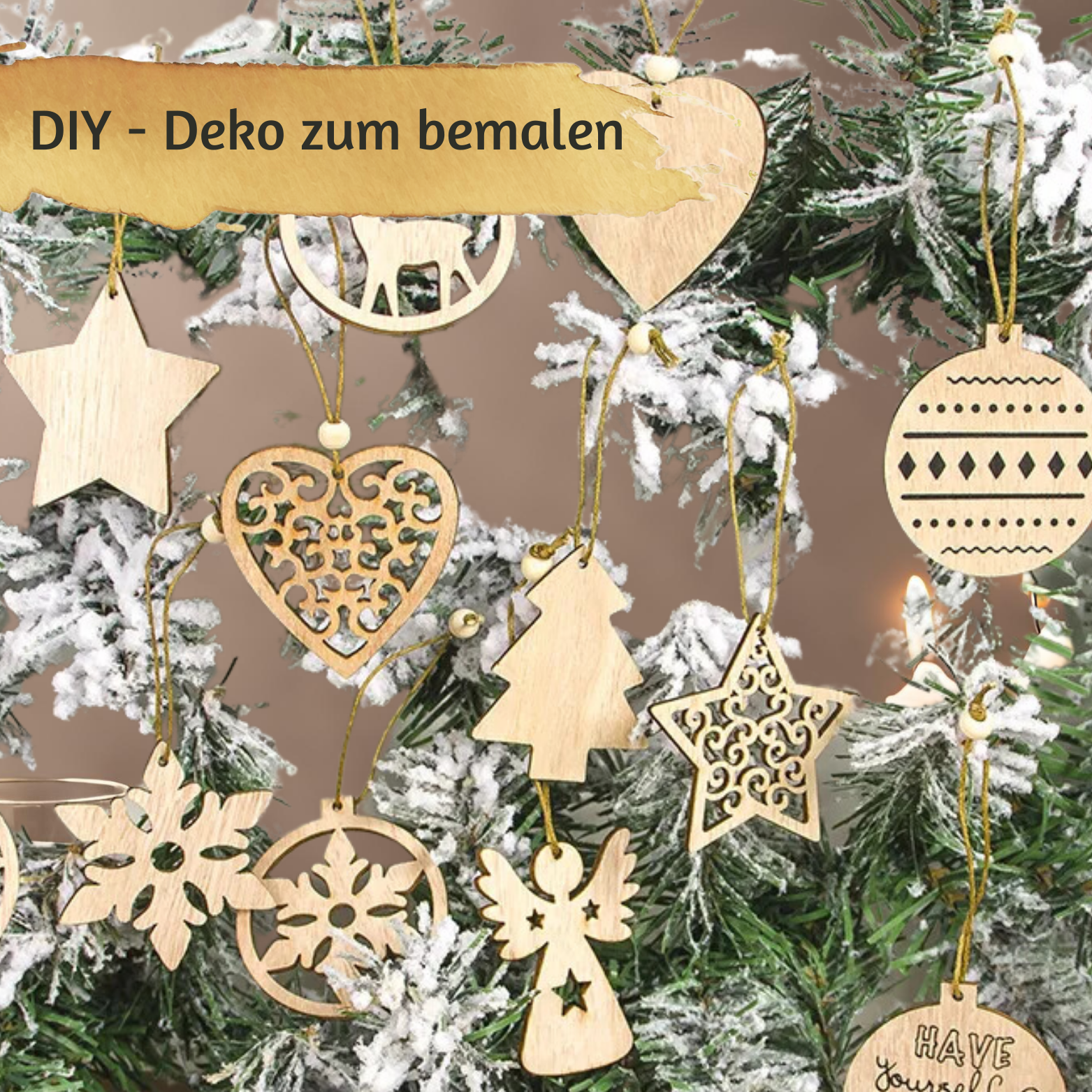 Die Weihnachts-Ornamente bestehen aus glattem Holz, das sich leicht bemalen und personalisieren lässt. Sie können Ihre Lieblingsfarben, Designs und Weihnachtsmotive verwenden, um eine individuelle Kreation zu schaffen. Die Ornamente können mit Glitzer, Farben, Aufklebern und anderen Dekorationen verziert werden.