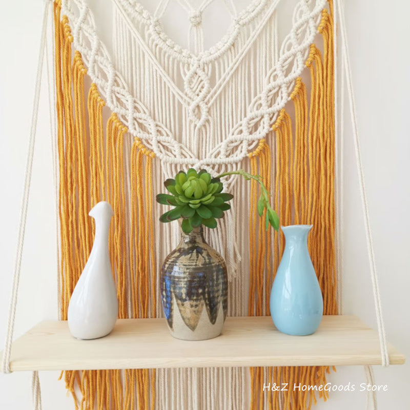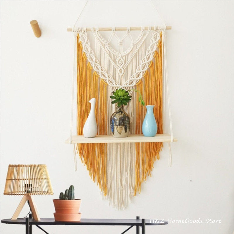 Handmade Tapestry Woven Wooden Board Shelf Nordic Living Room